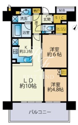 平米数 | 54.87m2 | 部屋詳細 | LDK13.3帖/洋室6帖/洋室4.8帖 |