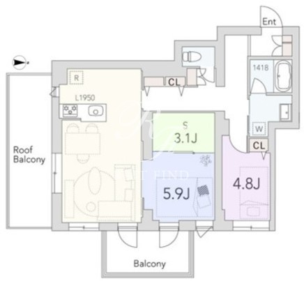 平米数 | 72.84m2 | 部屋詳細 | LDK15.4帖/洋室5.9帖/洋室4.8帖/サービスルーム3.1帖 |