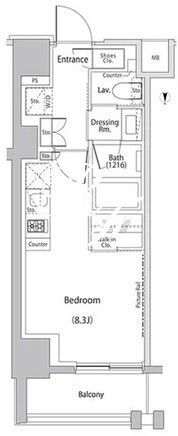 平米数 | 25.43m2 | 部屋詳細 | 洋室8.3帖/K2帖 |