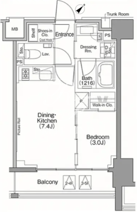 所在階/向き | 3階/南東 | 間取り | 1DK+WIC+SIC |