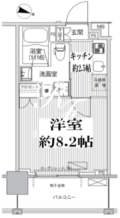 平米数 | 25.38m2 | 部屋詳細 | 洋室8.2帖/K2.5帖 |