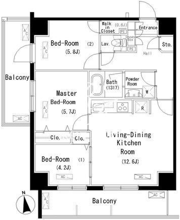 平米数 | 65.28m2 | 部屋詳細 | LDK12.6帖/洋室5.8帖/洋室5.7帖/洋室4.2帖 |
