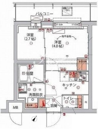 平米数 | 25.85m2 | 部屋詳細 | 洋室4.8帖/洋室2.7帖/K2帖 |