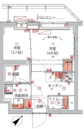 平米数 | 25.85m2 | 部屋詳細 | 洋室4.8帖/洋室2.7帖/K2帖 |
