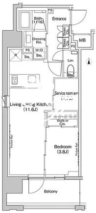 平米数 | 41.54m2 | 部屋詳細 | LDK11.6帖/洋室3.8帖/サービスルーム1.7帖 |