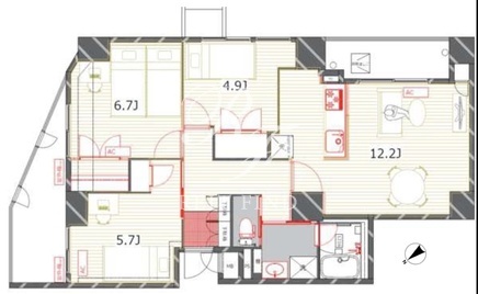 平米数 | 73.93m2 | 部屋詳細 | LDK12.2帖/洋室6.7帖/洋室5.7帖/和室4.9帖 |