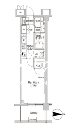 平米数 | 27.30m2 | 部屋詳細 | 洋室7.5帖/K2.8帖 |