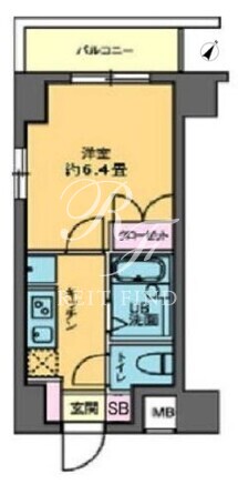 平米数 | 22.14m2 | 部屋詳細 | 洋室6.4帖/K2帖 |