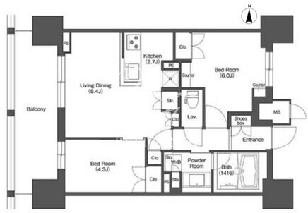 所在階/向き | 14階/西 | 間取り | 2LDK |