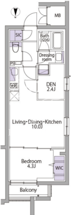 平米数 | 39.19m2 | 部屋詳細 | LDK10帖/洋室4.3帖/DEN2.4帖 |
