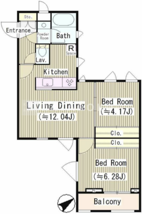 | 平米数 | 47.63m2 | 部屋詳細 | LDK12.04帖/洋室6.28帖/洋室4.17帖 |
