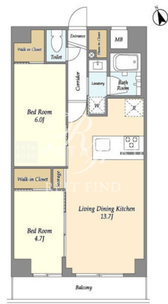 | 平米数 | 55.86m2 | 部屋詳細 | LDK13.7帖/洋室6帖/洋室4.7帖 |