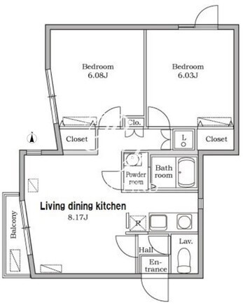 平米数 | 46.86m2 | 部屋詳細 | LDK8.17帖/洋室6.08帖/洋室6.03帖 |