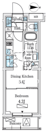 平米数 | 25.02m2 | 部屋詳細 | DK5.4帖/洋室4.3帖 |