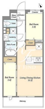 平米数 | 40.76m2 | 部屋詳細 | LDK10.3帖/洋室3.9帖/洋室3.4帖 |