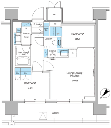 平米数 | 43.30m2 | 部屋詳細 | LDK10帖/洋室4.2帖/洋室3.5帖 |