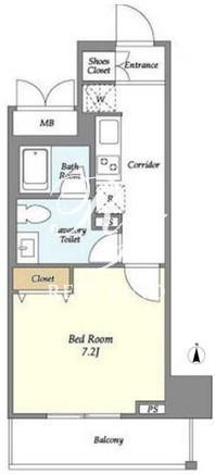 平米数 | 28.07m2 | 部屋詳細 | 洋室7.2帖/K2帖 |