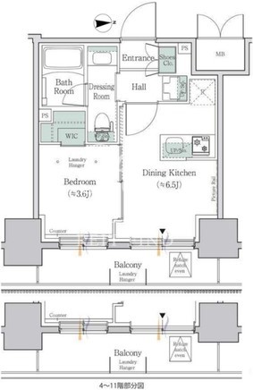 所在階/向き | 6階/東 | 間取り | 1DK+WIC |