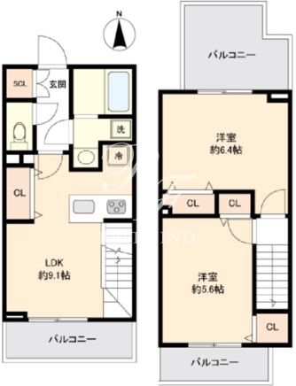 平米数 | 50.36m2 | 部屋詳細 | LDK9.1帖/洋室6.4帖/洋室5.6帖 |