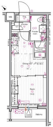 平米数 | 26.32m2 | 部屋詳細 | DK5.7帖/洋室4.3帖 |