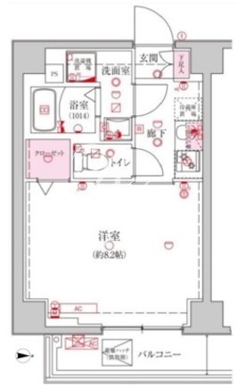 平米数 | 25.84m2 | 部屋詳細 | 洋室8.2帖/K2帖 |