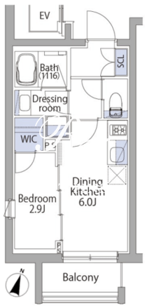 所在階/向き | 4階/南 | 間取り | 1DK+WIC |