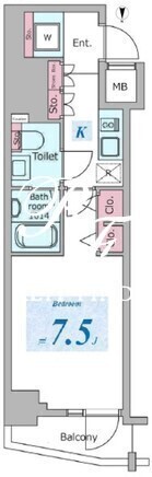 平米数 | 25.35m2 | 部屋詳細 | 洋室7.5帖/K2帖 |