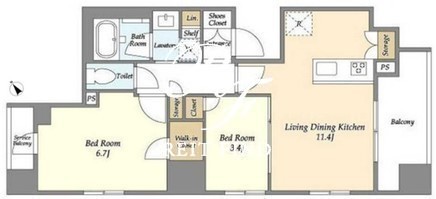 平米数 | 50.42m2 | 部屋詳細 | LDK11.4帖/洋室6.7帖/洋室3.4帖 |
