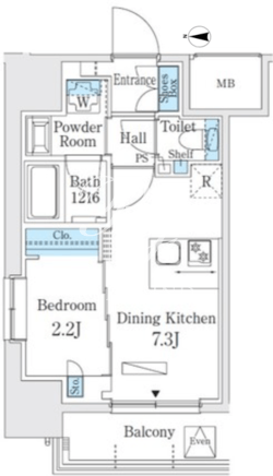 平米数 | 27.74m2 | 部屋詳細 | DK7.3帖/洋室2.2帖 |
