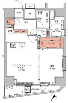 所在階/向き | 13階/北西 | 間取り | 1LDK+WIC+SIC |