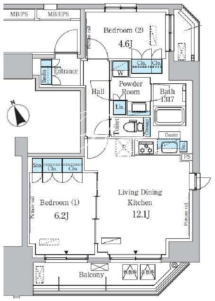 平米数 | 56.16m2 | 部屋詳細 | LDK12.1帖/洋室6.2帖/洋室4.6帖 |