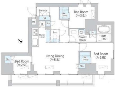 | 所在階/向き | 9階/南西 | 間取り | 3LDK+WIC |