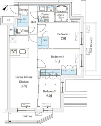 平米数 | 75.17m2 | 部屋詳細 | LDK14.9帖/洋室7帖/洋室6.1帖/洋室6帖 |