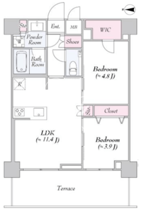 平米数 | 48.36m2 | 部屋詳細 | LDK11.4帖/洋室4.8帖/洋室3.9帖 |