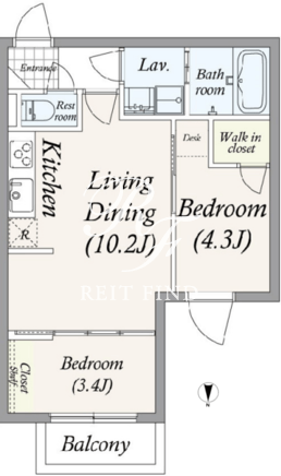 平米数 | 40.17m2 | 部屋詳細 | LDK10.2帖/洋室4.3帖/洋室3.4帖 |