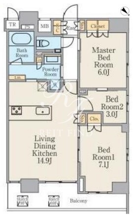 平米数 | 68.42m2 | 部屋詳細 | LDK14.9帖/洋室7.1帖/洋室6帖/洋室3帖 |