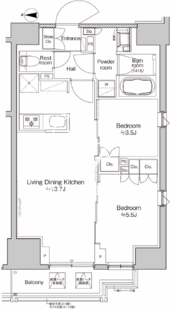 平米数 | 51.69m2 | 部屋詳細 | LDK13.7帖/洋室5.5帖/洋室3.5帖 |