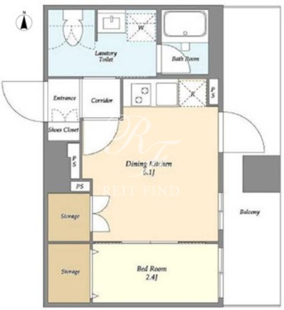 平米数 | 25.25m2 | 部屋詳細 | DK6.1帖/洋室2.4帖 |