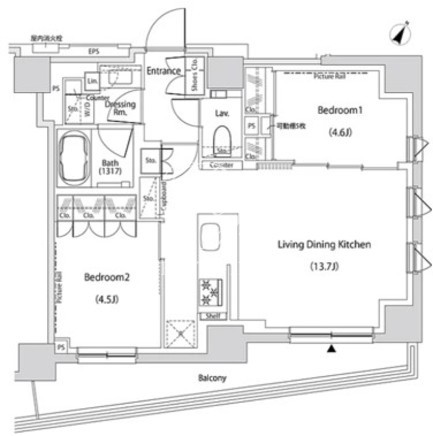 平米数 | 52.61m2 | 部屋詳細 | LDK13.7帖/洋室4.6帖/洋室4.5帖 |