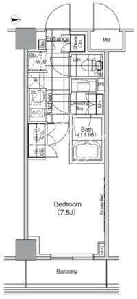 平米数 | 25.01m2 | 部屋詳細 | 洋室7.5帖/K2帖 |
