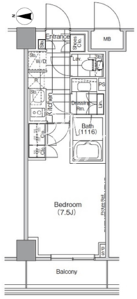 平米数 | 25.01m2 | 部屋詳細 | 洋室7.5帖/K2帖 |