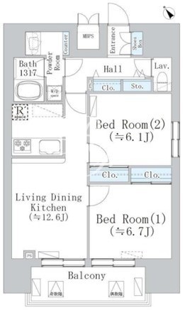 | 平米数 | 60.65m2 | 部屋詳細 | LDK12.6帖/洋室6.7帖/洋室6.1帖 |