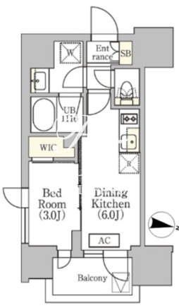 所在階/向き | 4階/東 | 間取り | 1DK+WIC |