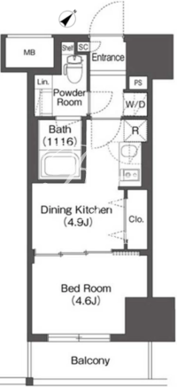 平米数 | 25.49m2 | 部屋詳細 | DK4.9帖/洋室4.6帖 |