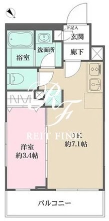 平米数 | 25.01m2 | 部屋詳細 | DK7.1帖/洋室3.4帖 |