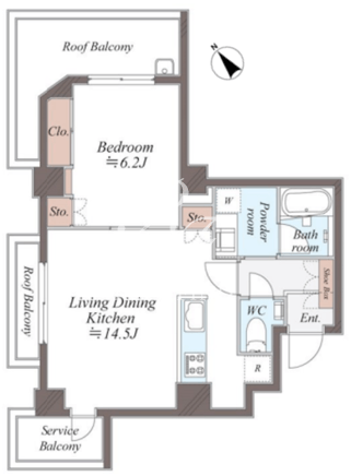 平米数 | 48.58m2 | 部屋詳細 | LDK14.5帖/洋室6.2帖 |