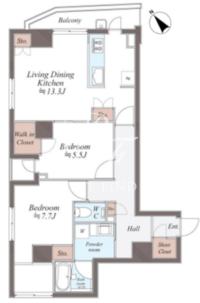 平米数 | 67.23m2 | 部屋詳細 | LDK13.3帖/洋室7.7帖/洋室5.5帖 |