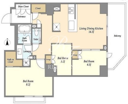 | 平米数 | 68.86m2 | 部屋詳細 | LDK14.3帖/洋室8.2帖/洋室4.5帖/洋室3.2帖 |