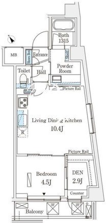 | 平米数 | 39.80m2 | 部屋詳細 | LDK10.4帖/洋室4.5帖/DEN2.9帖 |