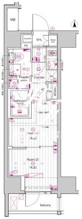 平米数 | 25.23m2 | 部屋詳細 | 洋室4.3帖/洋室4.3帖/K2帖 |